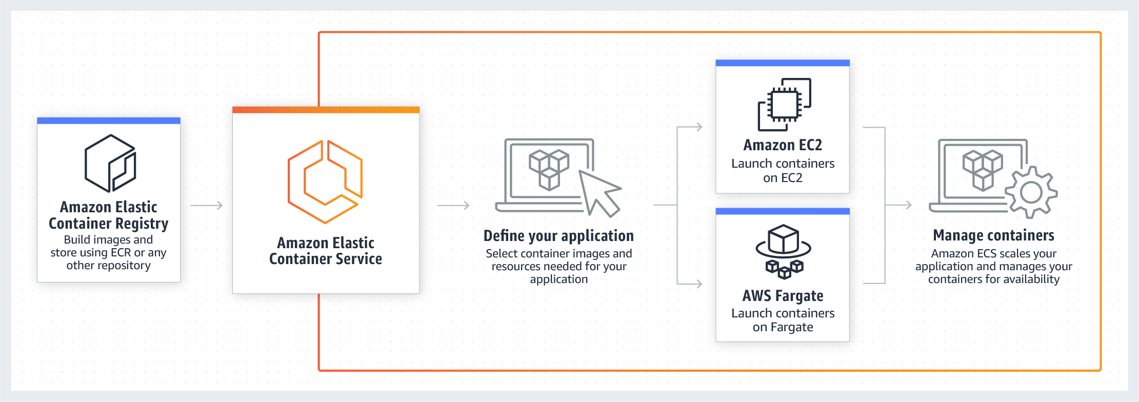 Amazon Elastic Container Service (Amazon ECS) is a fully managed container orchestration service that makes it easy to operate containerized workloads at scale. It also integrates with other core AWS services, such as Amazon Route 53, AWS Identity and A