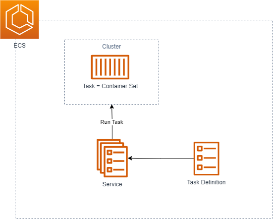 ECS의 구성에는 Task Definition, Task, Service, Cluster가 있습니다.
