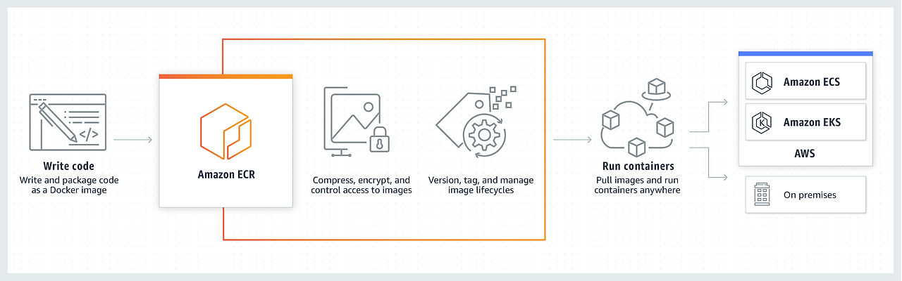 ECR Private Repository에 Docker Image를 등록 해두면 권한이 있는 사용자만 도커 이미지에 접근할 수 있고, Amazon ECS에서 Docker Image를 실행하여 컨테이너 기반 애플리케이션을 손쉽게 배포하고 관리할 수 있습니다. 이를 통해 ECR과 ECS 간의 통합된 워크플로를 활용해 더욱 간편하고 안전하게 컨테이너화된 서비스를 운영할 수 있습니다.