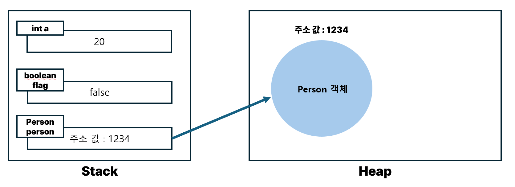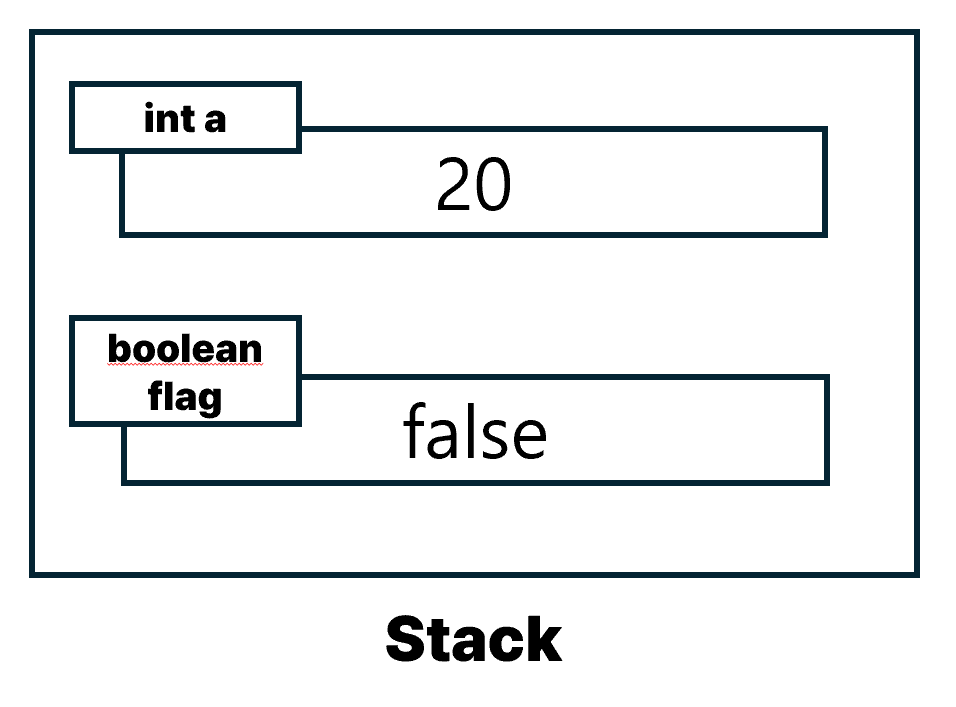 그림처럼 기본형 타입은 Memory 공간 중 Stack에 a와 flag의 실제 데이터 값이 저장된다.