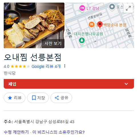 따라서 저희 프로젝트에서는 데이터의 최신성을 보장하기위해 DB에 적재된 데이터를 주기적으로 검증하는 과정이 필요하다고 생각했습니다. 이를 위해 네이버 지도에서 음식점을 검색하여 폐업 여부 및 이름 변경을 정기적으로 확인하는 작업을 진행했습니다. 이 과정을 통해 음식점 데이터의 최신성을 확보하여, 사용자에게 실제 존재하는 음식점만을 추천하도록 개선할 수 있었습니다.