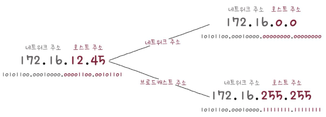 - 하나의 IP 주소는 크게 네트워크 주소와 호스트 주소로 이루어짐