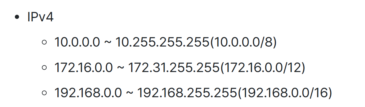 - 사설 IP란, 사설 네트워크에서 사용하기 위한 IP 주소로 일반적으로 라우터가 할당한다.