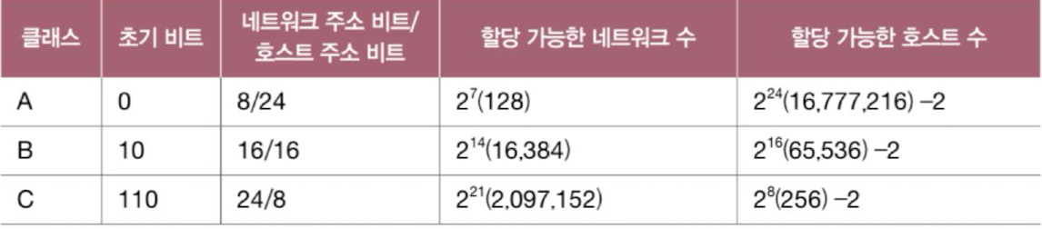 - 클래스를 기반으로 IP 주소를 관리하는 주소 체계를 클래스풀 주소 체계(classful addressing)라고 한다.