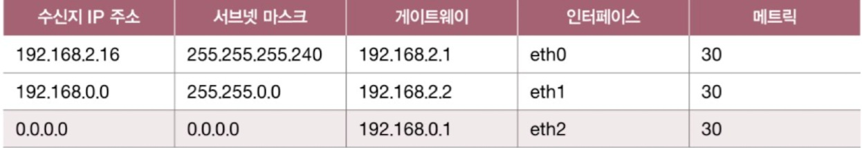 - 라우팅 테이블은 다음과 같은 정보들로 구성된다.