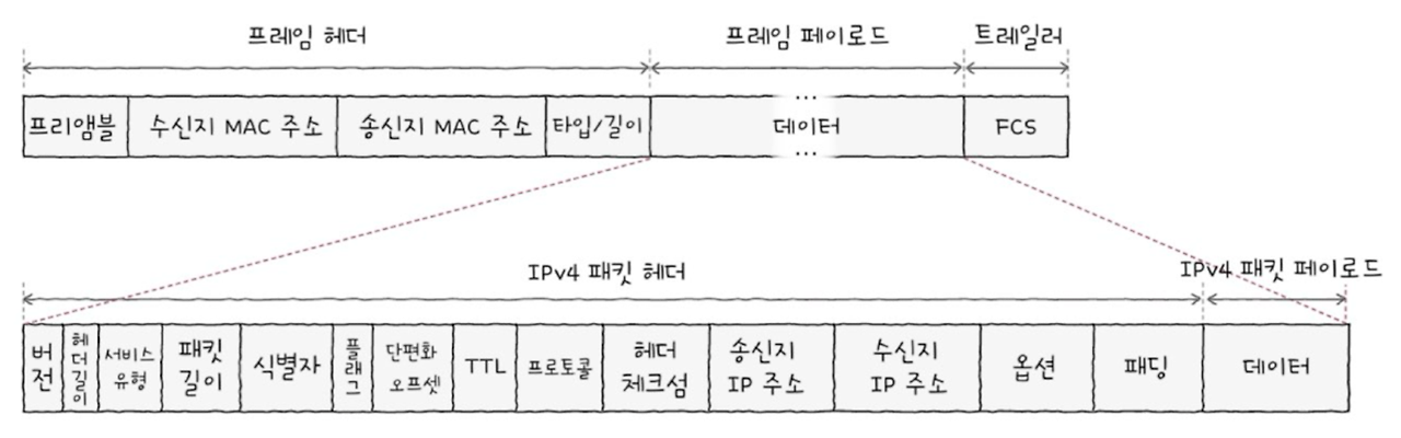 - 기본적으로 네트워크에서는 IP 주소를 사용하지만, 패킷을 올바르게 송신하려면 상대 호스트의 MAC 주소가 필요하다.