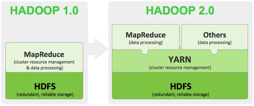 2011년에 정식 발표된 Hadoop v1은 분산 파일 관리 시스템인 HDFS와 분산 데이터 처리를 위한 MapReduce 프레임워크만 제공했습니다.