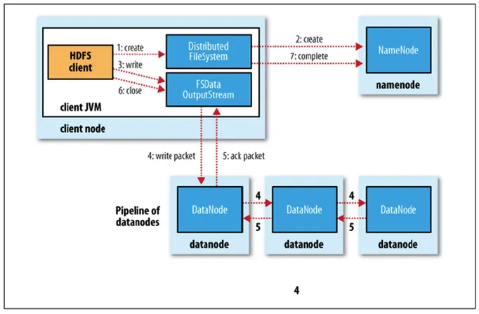 4,5. DataNode들이 파이프라인 방식으로 복제본 전파