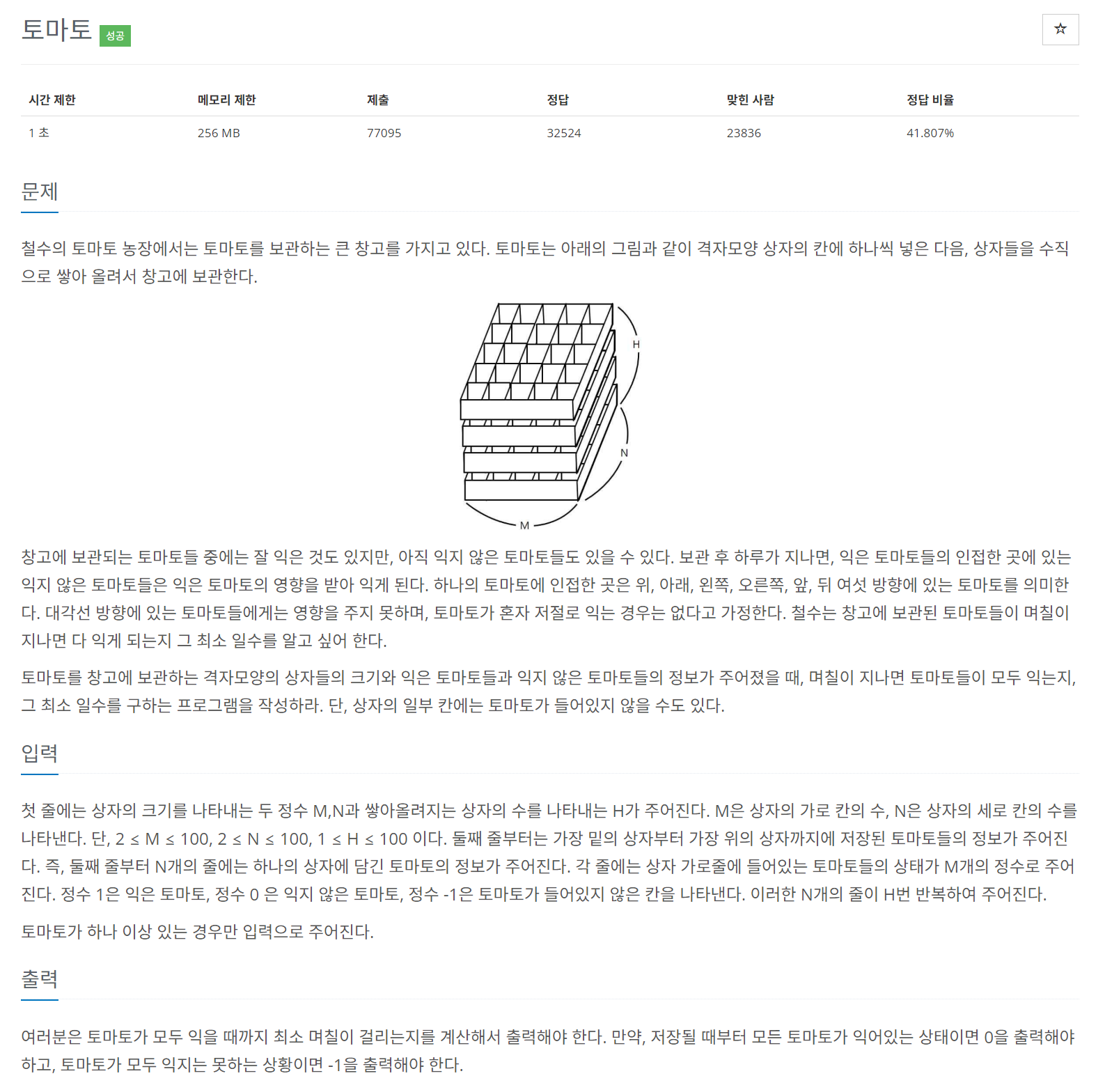 if문의 조건을 map[nx][ny][nz] == 0 || map[nx][ny][nz] > map[x][y][z] + 1로 두어서 최소값이 저장될 수 있게 진행했다.