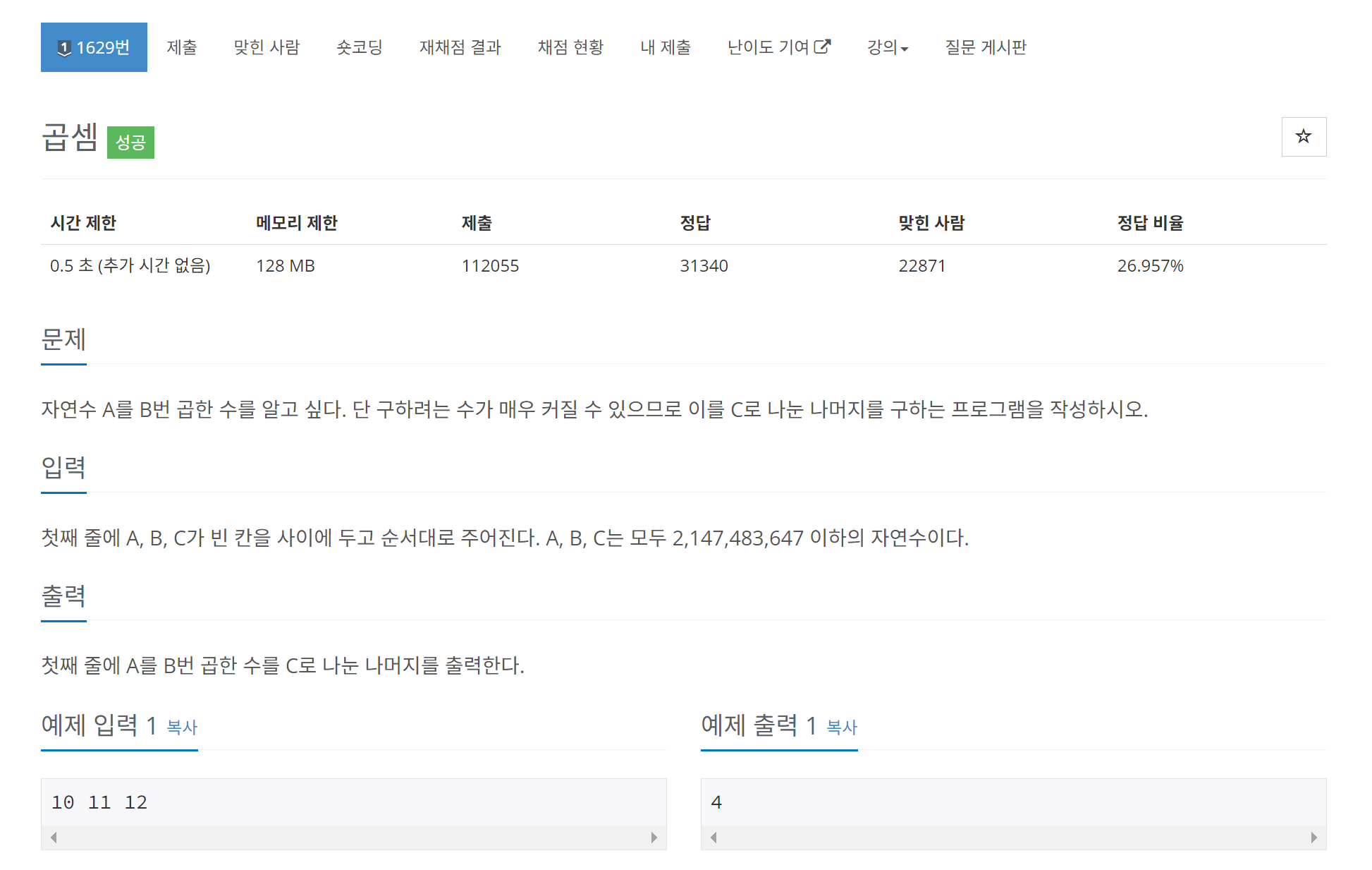 그리고 재귀를 통해서 지수가 1이 나올때까지 나눠주고 나중에 합치는 방식으로 문제를 해결했다.