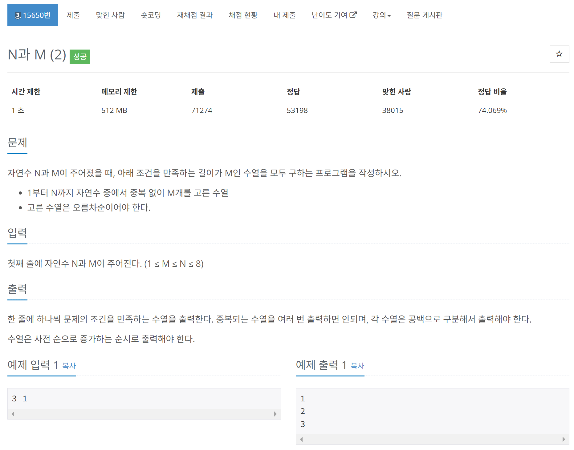 1 ~ N 중의 수 중에 M개를 오름차순으로 출력하는 문제이다.