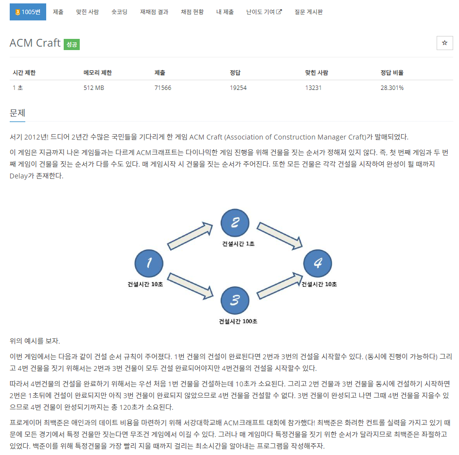 예를 들어 위의 문제에서 2번 건물을 건설하기 위해서는 1번을 건설해야하고, 4번 건물을 건설하기 위해서는 1,2,3번 건물이 세워줘야하는 것 처럼 말이다.