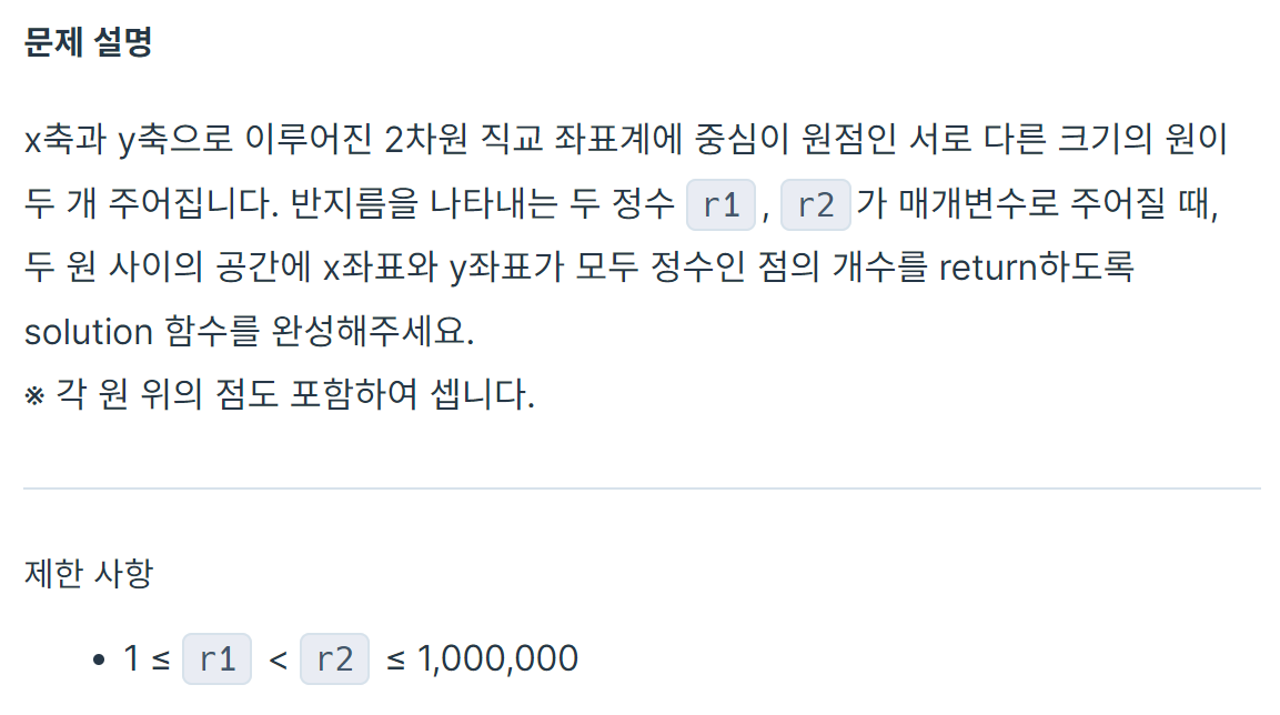 문제 풀이 자체는 그리 어렵지 않았다. 두 원 사이의 점이기 때문에 xy축 4분면에 동일한 점들이 생길것이다.