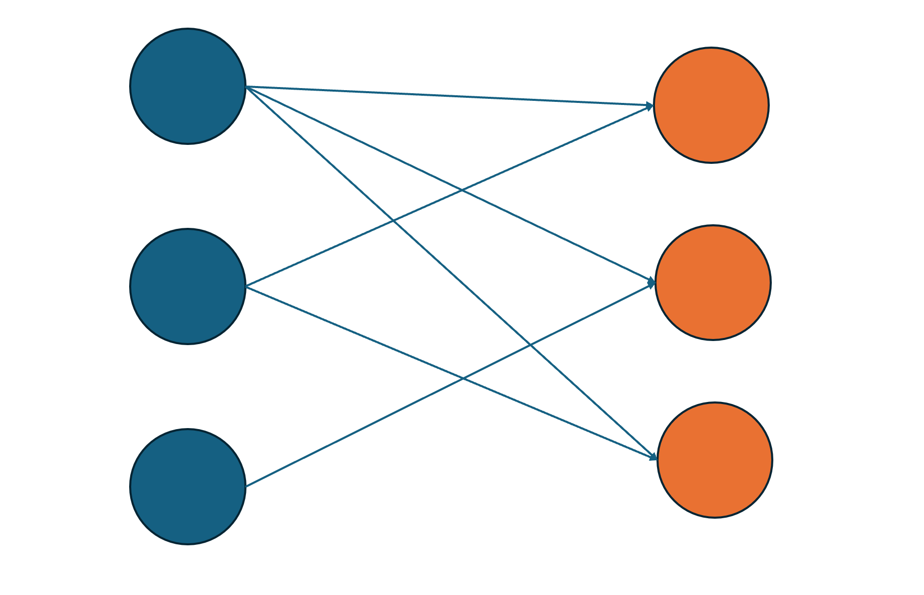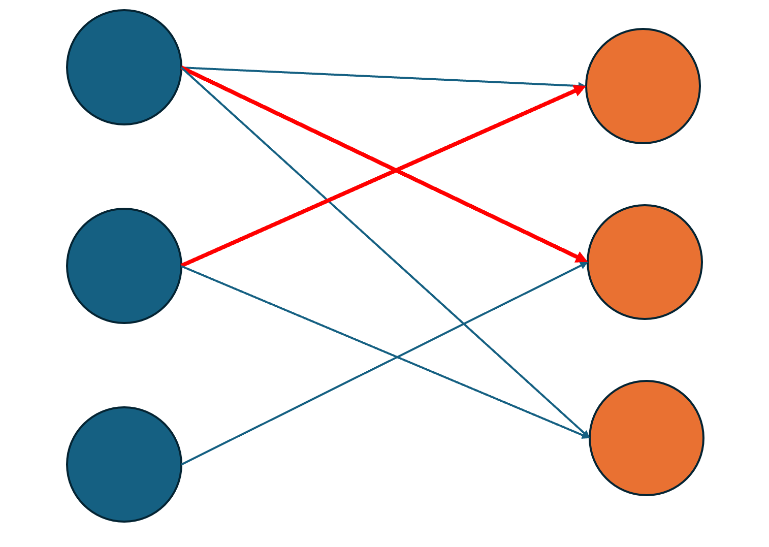 위와 같이 A라는 집단에서 B라는 집단의 항목들에 대한 선호도가 있을 때, 어떻게 해야 A집단과 B집단을 연결할 수 있을까를 푸는 문제라고 생각하면 된다..